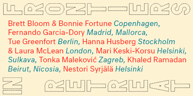 Artists: Brett Bloom & Bonnie Fortune (Copenhagen), Fernando Garcia-Dory (Madrid, Mallorca), Tue Greenfort (Berlin), Hanna Husberg (Stockholm) & Laura McLean (London), Mari Keski-Korsu (Helsinki, Sulkava), Tonka Maleković (Zagreb), Khaled Ramadan (Beirut, Nicosia) and Nestori Syrjälä (Helsinki).
