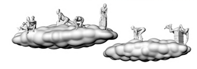 En grec ancien le terme “meteoros” signifie “qui s’élève du ciel”, “suspendu”, “élevé”, ou encore “au milieu de”. Les nuages constituent depuis toujours des liens entre le réel et l’imaginaire, entre le paradis et la terre, la légèreté et la gravité. Ils peuplent les cieux des fresques de la Renaissance, où ils sont souvent représentés peuplés de profanes et de prophètes, d’anges et de divinités. Tout au long de l’histoire, cette voute céleste a été un espace de convivialité, d’apprentissage et d’échanges.