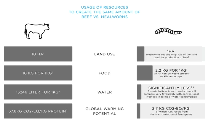 This replaces about the same amount of protein that you would otherwise consume in 500g of meat, animal products or other protein foods. Feed your mealworms sustainably on vegetable scraps from your kitchen and always know 100% what you eat.