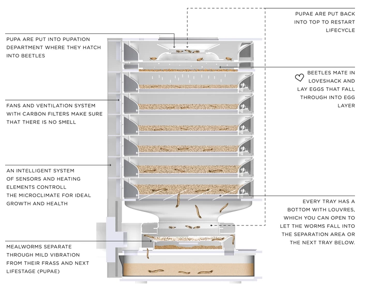 It all started when founder Katharina left her little home village on the border between Austria and Hungary to venture into the world as an industrial designer. She ended up in Hong Kong where she realized that most of the food there was imported and almost no one knew where it came from. That´s why she started to investigate the current food system and looked into alternatives. Insects were one of the future proteins that were very promising and perfect to create a solution for people to grow their food independently at home.