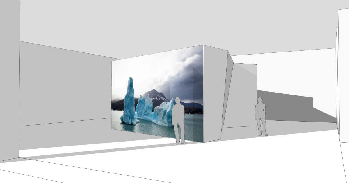 Angelika Markul cultive le souhait de filmer et sublimer dans une installation vidéo monumentale la disparition progressive du glacier de Tierra del Fuego. Cet archipel exceptionnel, constitué d’une île principale et d’une multitude de petits îlots, est situé à l’extrême sud du continent américain entre Argentine et Chili. Ce paysage disparaît, comme a disparu la civilisation amérindienne qui y vivait depuis douze mille ans, décimée par les Européens. Tierra del Fuego confronte l’extinction des civilisations et de leurs traditions au futur effacement des paysages causé par les bouleversements climatiques. Grâce à une manipulation numérique de l’image, l’artiste rend visible et accélère le processus de fonte du glacier, créant un nouveau paysage qui n’appartient qu’à l’esprit de celui qui le regarde. Cette sublimation du danger interpelle le spectateur avec pudeur, sensibilité et poésie. L’artiste convoque en parallèle une série de phénomènes et d’influences qui, ensemble, composent une symphonie de fin du monde : des dessins évoquant les traditions perdues des yagans et des alakalufs, ces pêcheurs nomades de Terre de Feu ; le mylodon, cet animal préhistorique endémique désormais disparu ; ou encore la Iluvia lenta (« pluie lente ») de la poètesse chilienne Gabriela Mistral, qui appelle à une nécessaire reconnexion avec la terre mère.