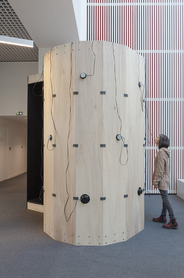 « Dans cette installation mêlant sculpture, technologie et son, j’ai cherché à raviver l’émerveillement pour des phénomènes cachés dans les sols et qui sont pourtant constitutifs de notre environnement. Par un dialogue art et science, j’ai également voulu explorer la vie qui réside dans la terre et sous nos pieds pour donner à voir et à entendre les émissions sonores des organismes vivants, révélateurs quasi-invisibles de la pollution des écosystèmes urbains dans lesquels nous évoluons. Que trouverait-on si on explorait le sol sous nos pieds ? Y trouverait-on un dernier espace libre de perturbations sonores anthropiques ? Y entendrait-on le chant d’un ver de terre, dernière oeuvre remarquable d’une planète en danger ? »