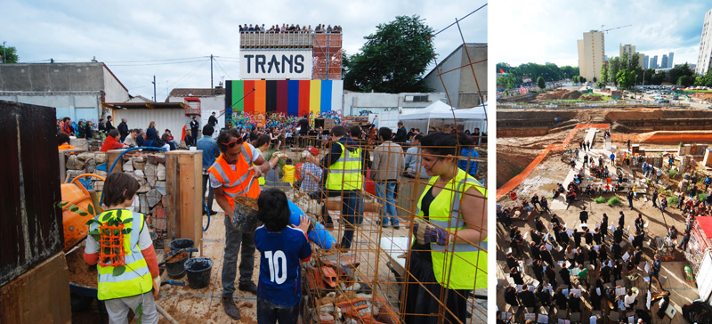 La présence d’un atelier au coeur du chantier a permis à l’artiste de trouver une place dans le monde professionnel des acteurs de l’urbanisme où ouvriers, entreprises, urbanistes et maîtres d’ouvrage constituent un nouvel environnement pour la pratique artistique. Dans le même mouvement, l’artiste a ouvert le chantier à de nouveaux publics : enfants, étudiants, habitants, passants… En brouillant les frontières entre art et travail, l’Atelier / TRANS305 propose une expérience esthétique du chantier.