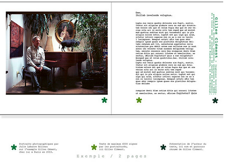 Dans un deuxième temps, elle leur propose l’écriture d’un article assez court pour un face à face avec les portraits. Anecdotes, avis, coups de gueule, mots de passionnés, liberté de ton, réunis par l’aspiration d’une ligne directrice, choisie en amont par quelques représentants des personnes photographiées. Avec ces textes, ces personnes parleront de leur expérience, de leur point de vue et mettront l’accent sur les efforts (minces) réalisables et indispensables par chacun de nous.